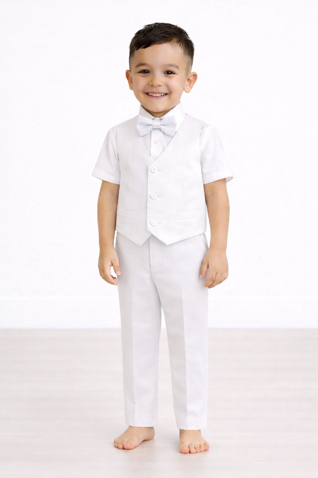 Included: Suspender Pants, White Cotton Shirt, Vest & Bow Tie