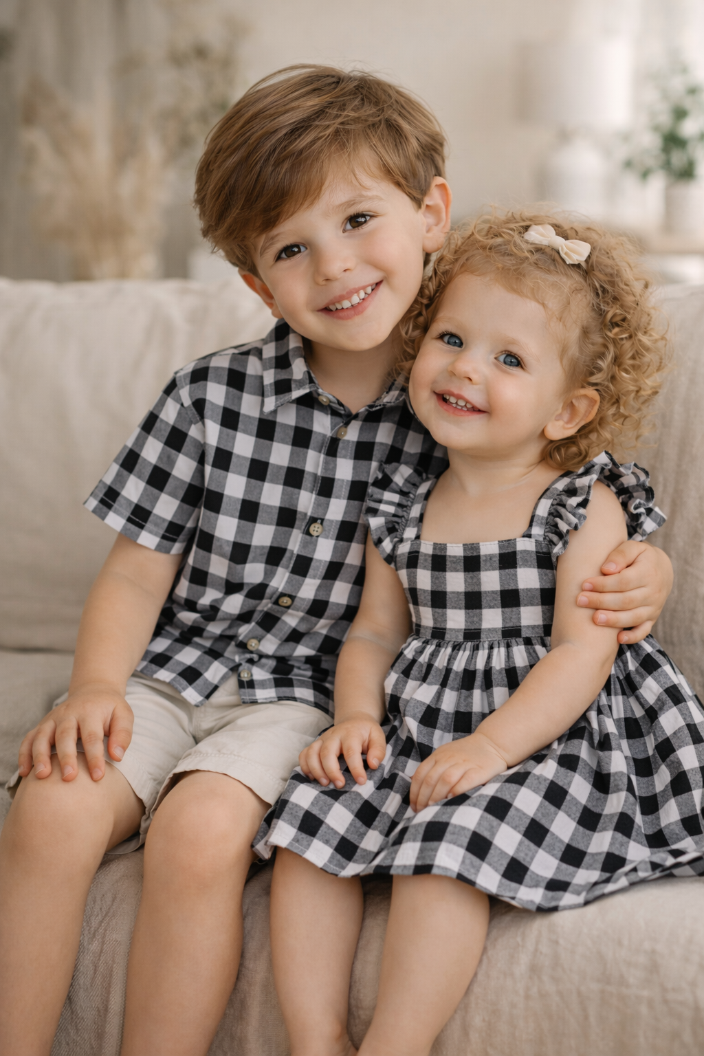 Brother & Sister Matching Outfit – Black Gingham