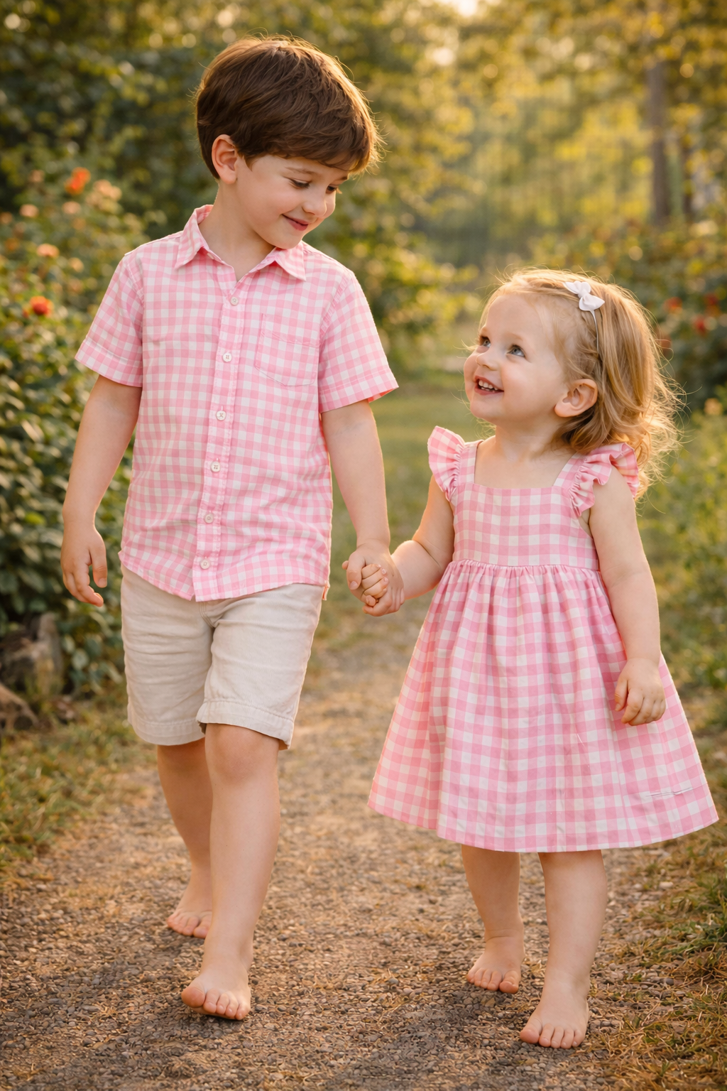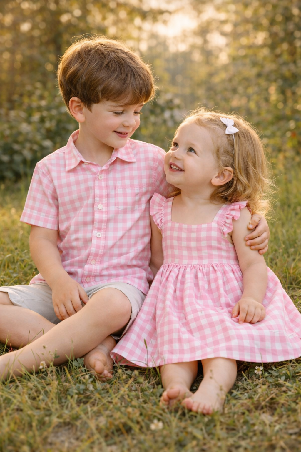 Brother & Sister Matching Outfit – Pink Gingham
