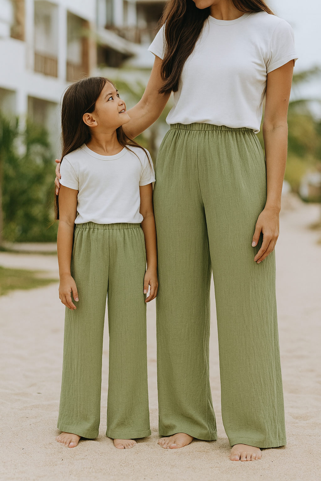 These matching wide-leg pants are perfect for creating effortless summer looks and unforgettable family moments.