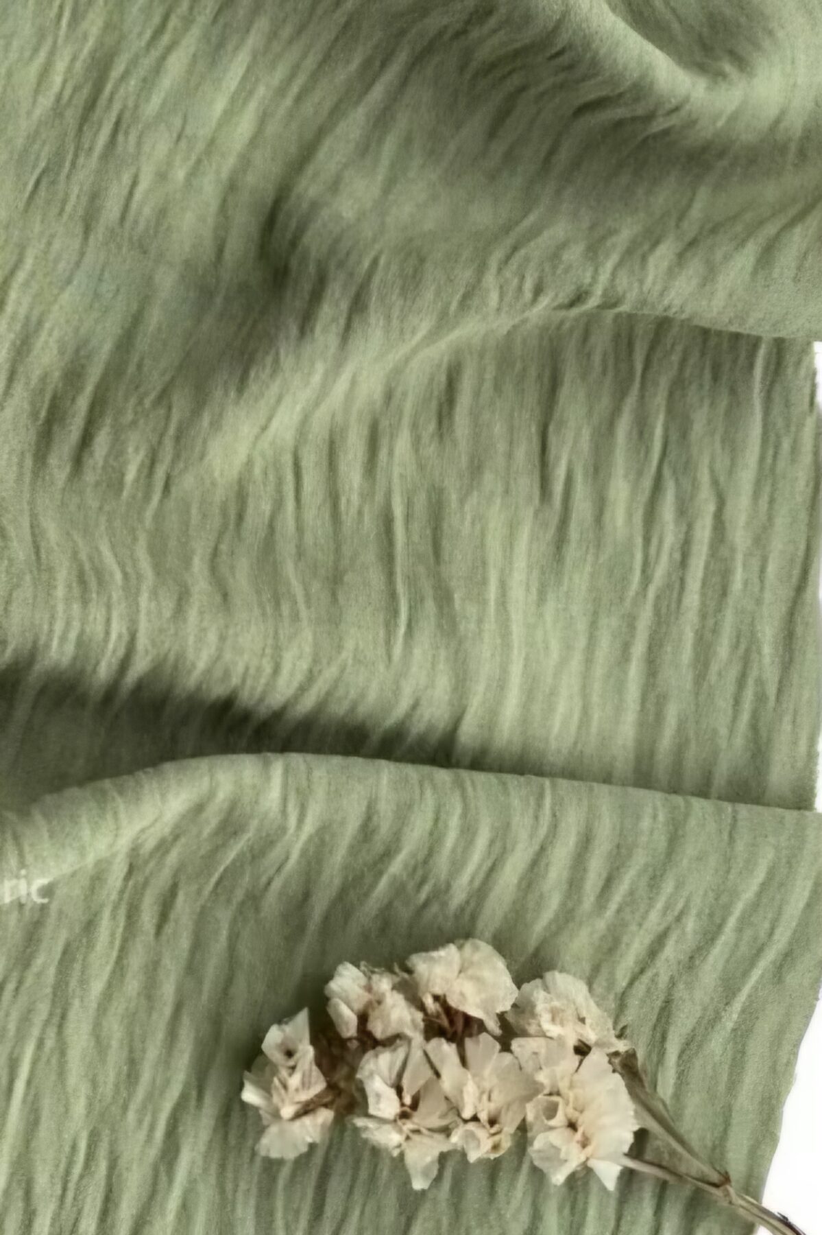 Fabric: Crinkle airflow, 100% polyester– a lightweight and flowy fabric with a soft drape.