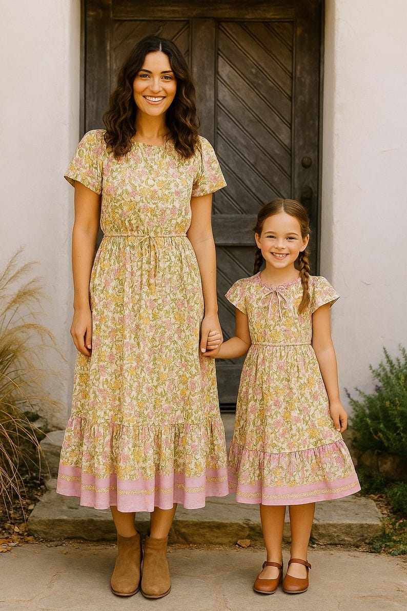 The flowy maxi length gives an elegant look while keeping the fit relaxed and easy to move in. Ideal for summer holidays, family photos, birthdays, or everyday wear, these matching mother–daughter dresses combine practicality with timeless style.
